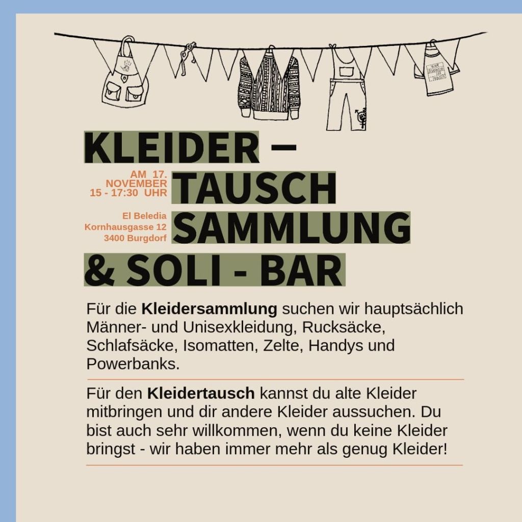 Für den Kleidertausch kannst du Kleider mitbringen und dir neue alte Kleidungsstücke aussuchen. Du bist auch sehr willkommen, wenn du keine Kleider bringst – wir haben genug Kleider!