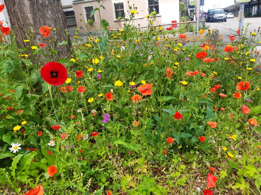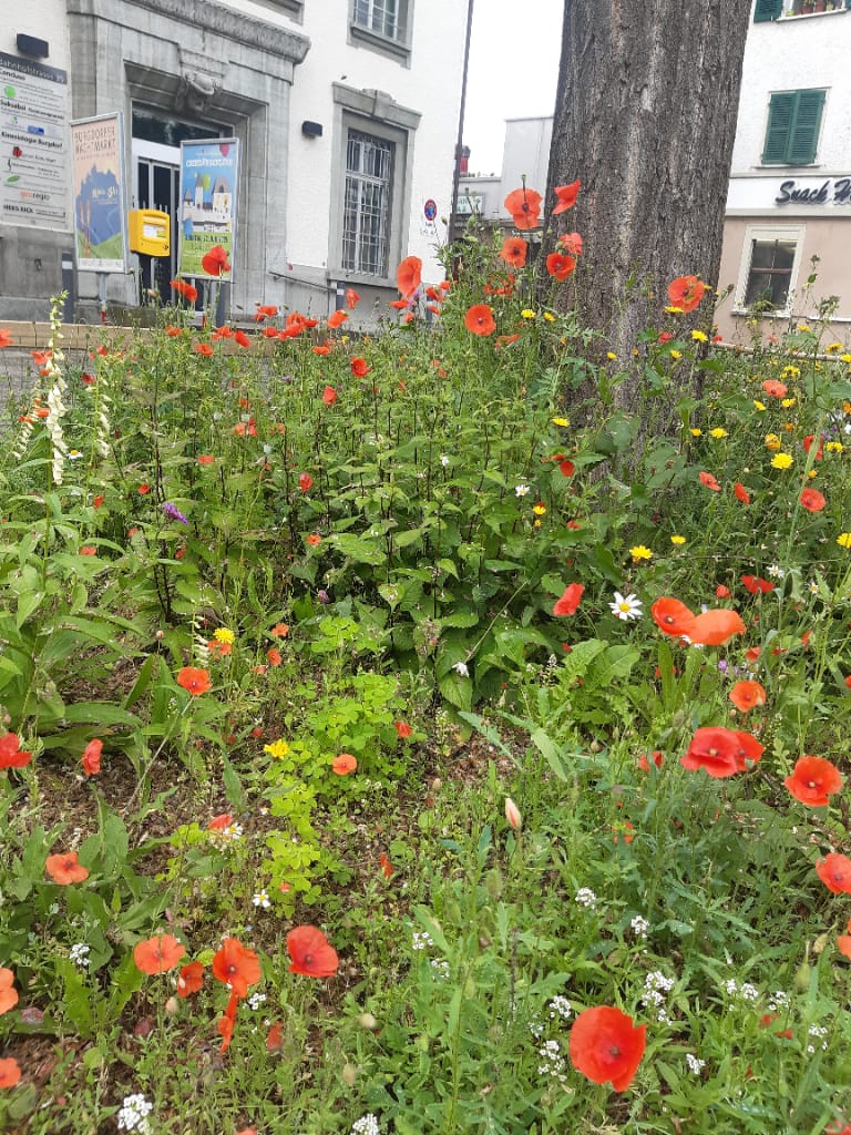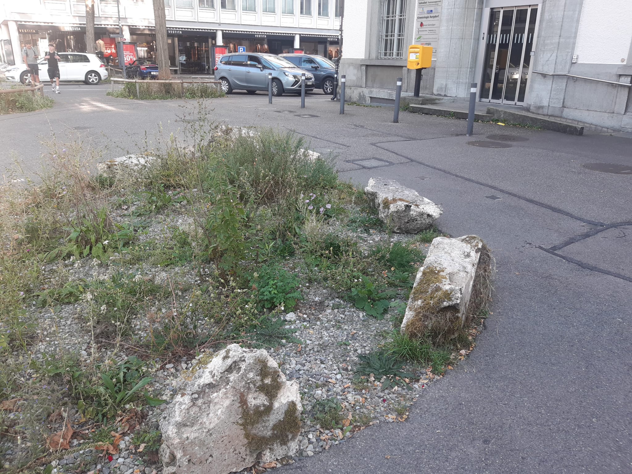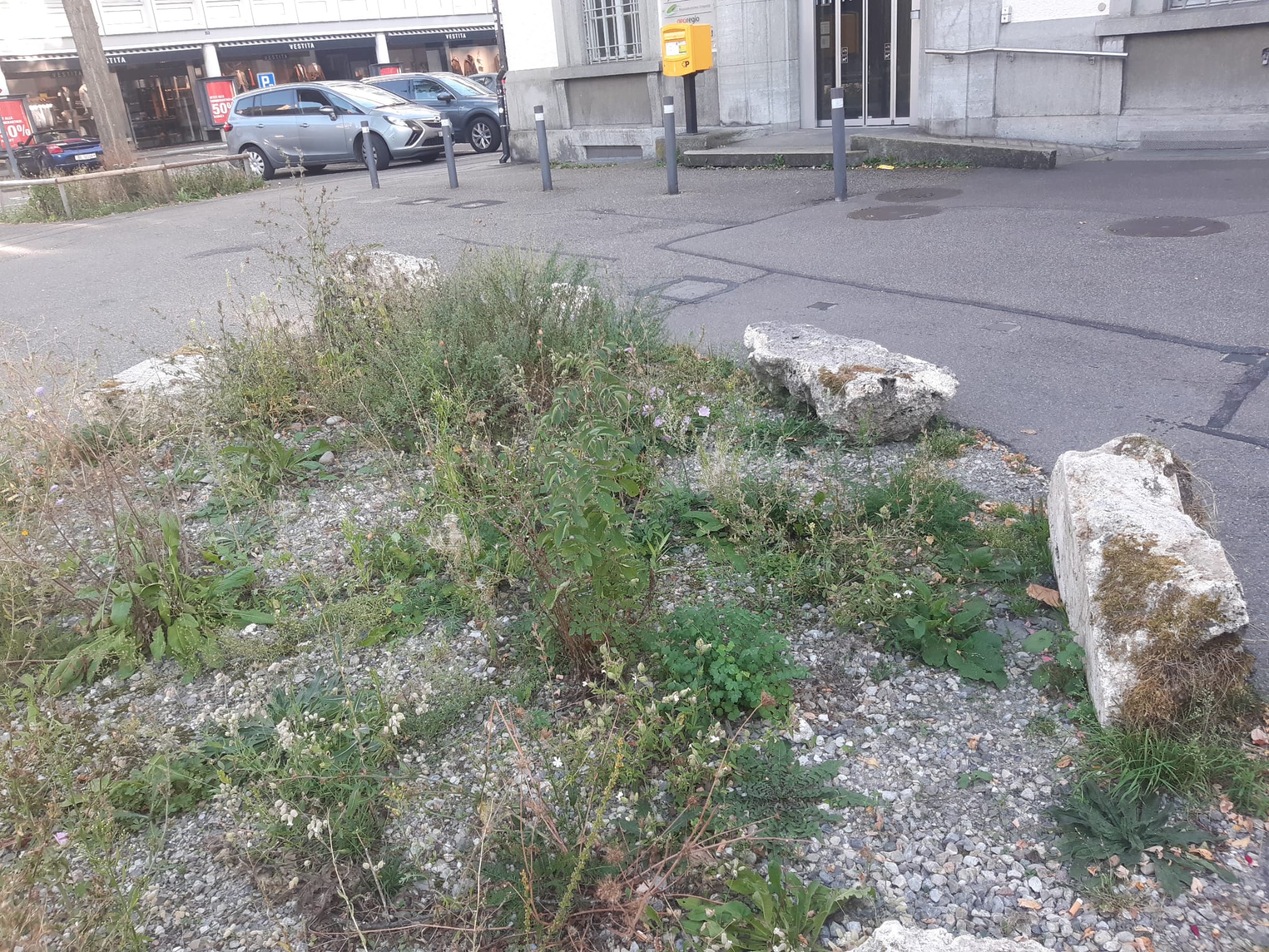 Unser 1. Projekt wurde im Mai 2024 mit der Stadt als Grundbesitzerin umgesetzt. Beim Postplatz gibt es seither entsiegelte Inseln, welche mit mehrheitlich einheimischen Pflanzen begrünt sind.